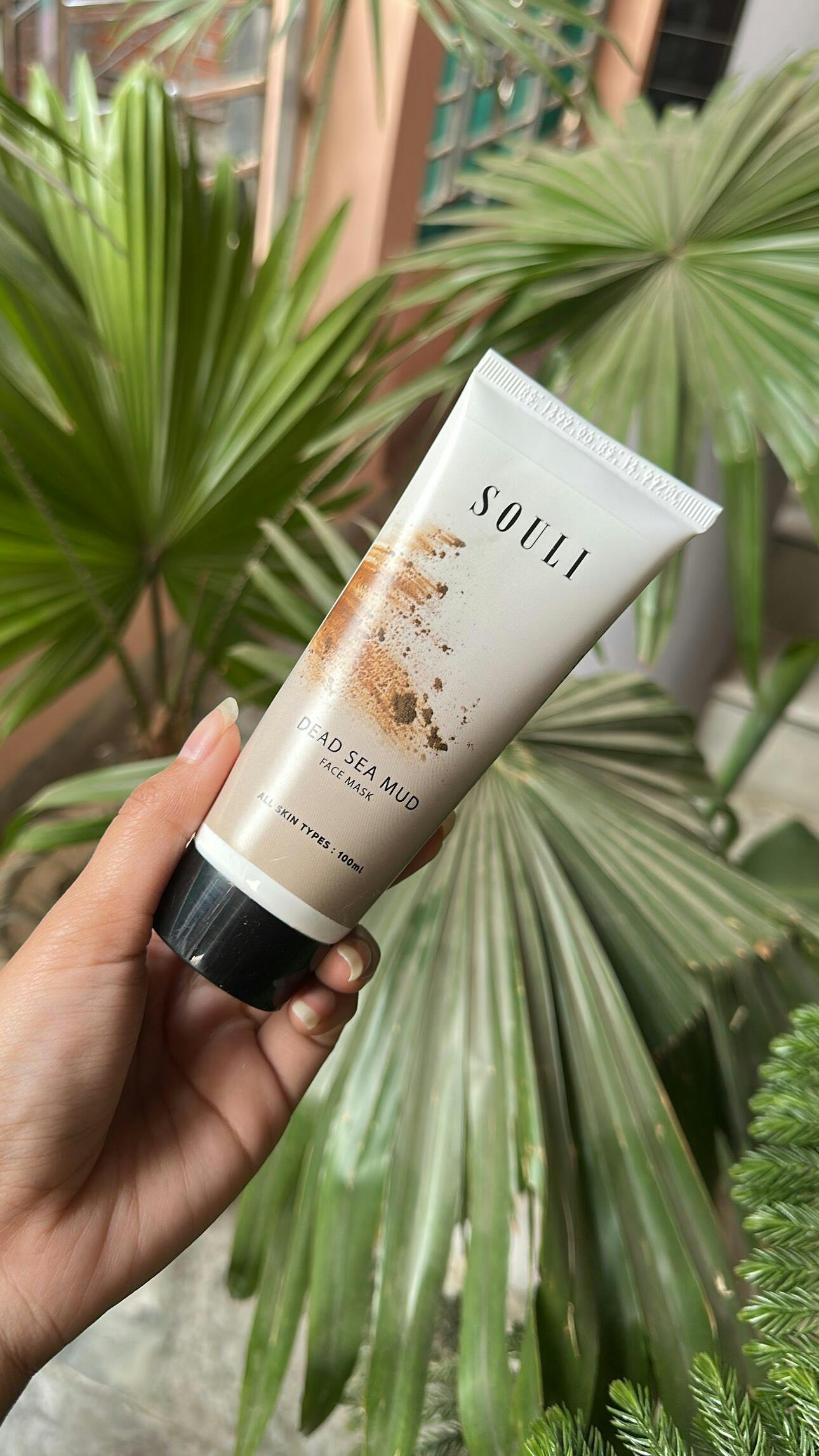 Souli Dead Sea Mask is a powerful detoxifying and hydrating treatment enriched with Dead Sea Mud, Ceramides, Jojoba Seed Oil, Niacinamide, and Hyaluronic Acid. This mineral-rich formula deeply cleanses pores, removes excess oil, purifies the skin, and strengthens the skin barrier while delivering long-lasting hydration. It helps reduce redness, smooth texture, minimize pores, and boost radiance—revealing a clearer, brighter, and more youthful-looking complexion. Suitable for all skin types, including sensitive and acne-prone skin.
